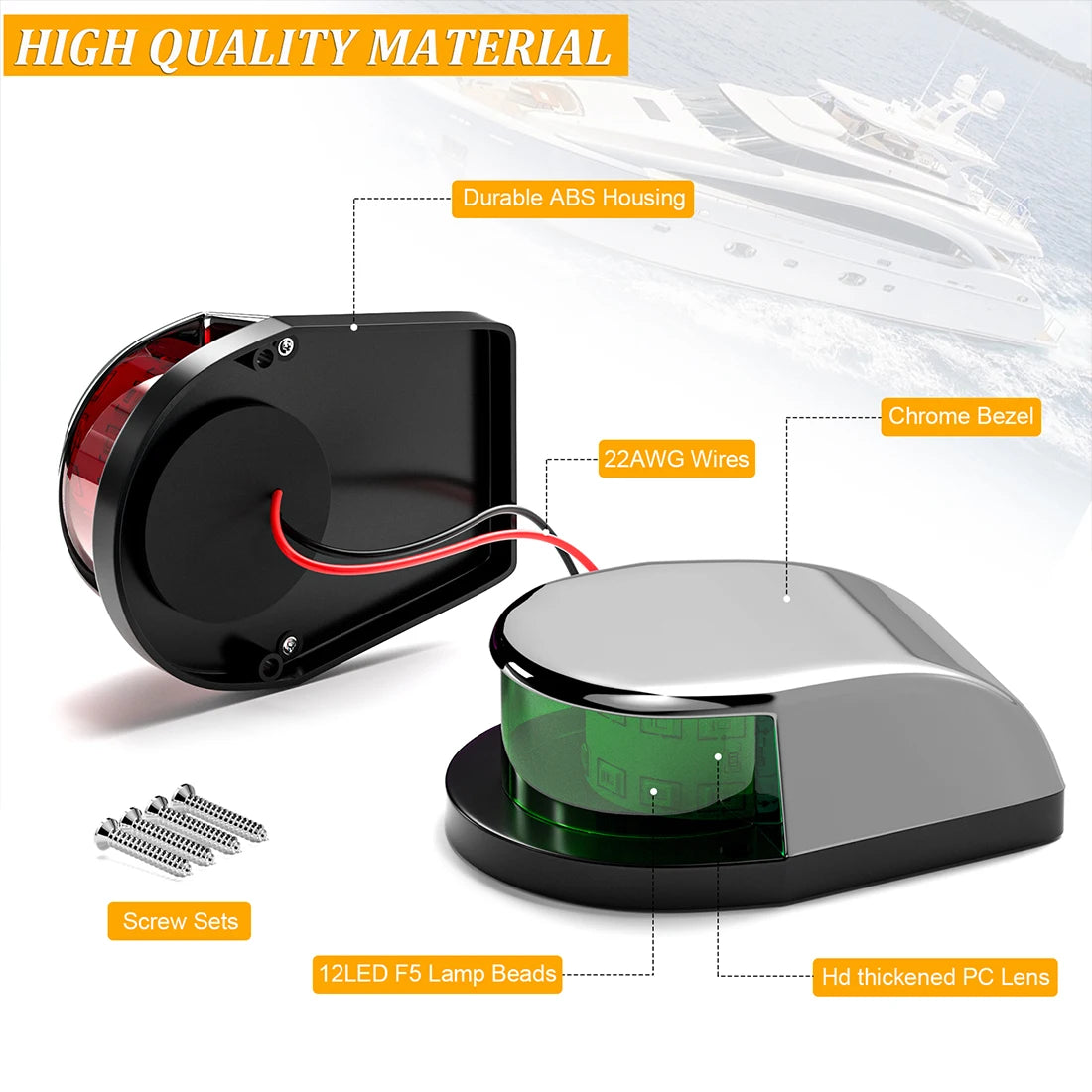 Luces de navegación para barcos marinos, luces laterales LED impermeables de 12V, luces de estribo de puerto rojo y verde para yate, barco de pesca