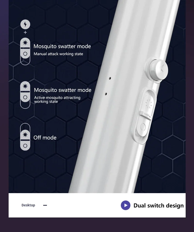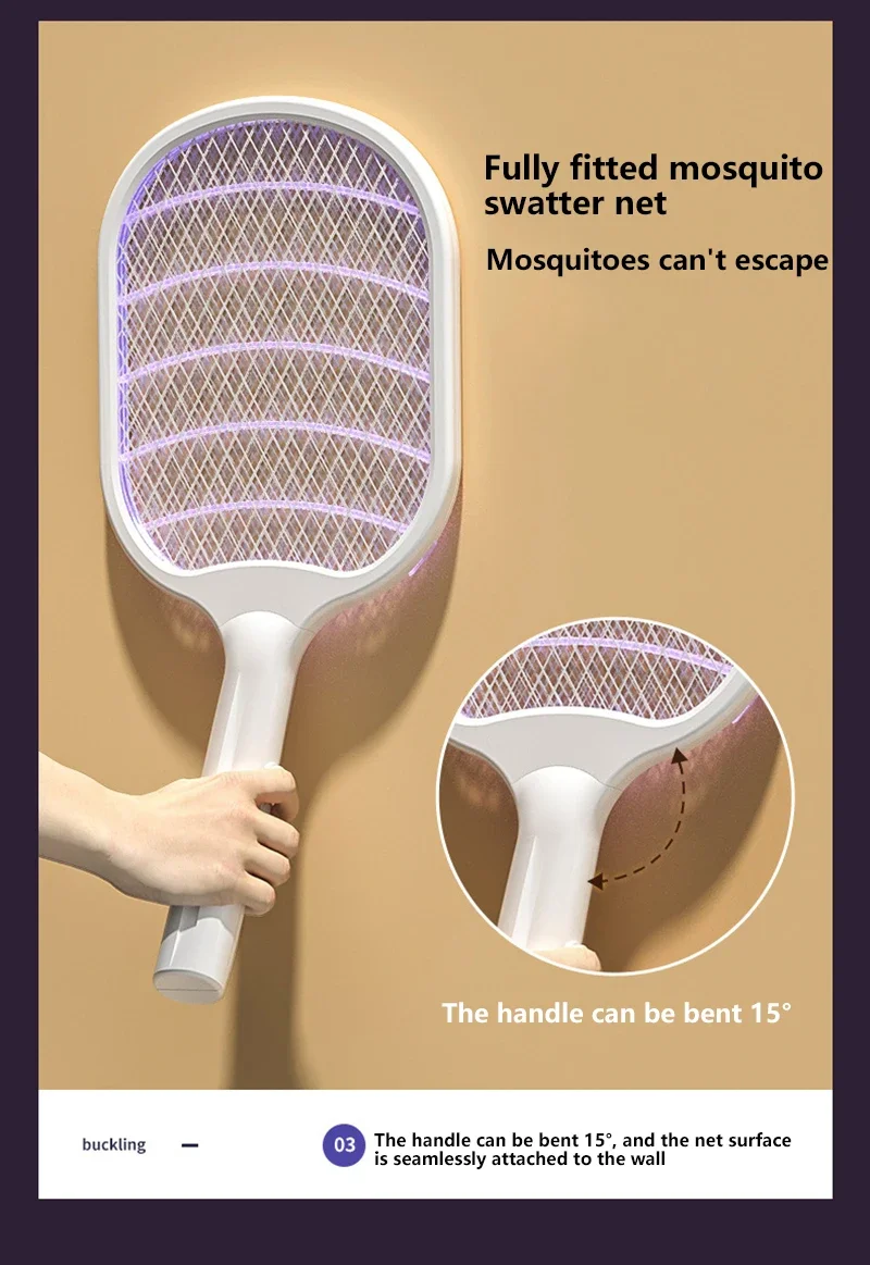 Nocturno automático: Deja el matamoscas en modo lámpara LED cerca de tu cama o ventana. Mata silenciosamente durante la noche sin molestarte.