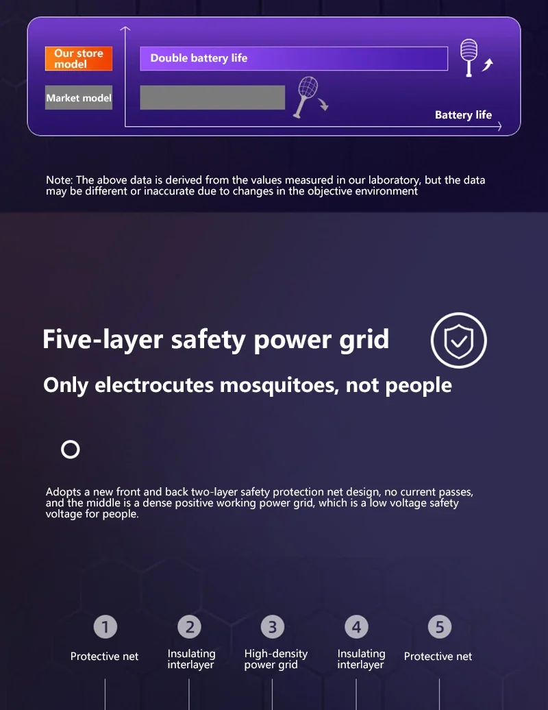 Voltaje de descarga: 3000 V (elimina al instante mosquitos, moscas y polillas)
